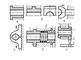 Рис. 2. Гайки винтовых передач: а — закрытая; б, в — открытые; г — разъёмная; д — компенсирующая осевой люфт; е — компенсирующая тепловые деформации; 1 — гайка; 2 — пружинное устройство; 3 — рычаг; 4 — коррекционная линейка.