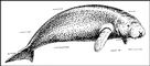 Дюгонь (Dugong dugon), водное млекопитающее; единственный представитель рода Dugong отряда сирен. Длина тела обычно 2,5—3,2 м; самцы весят около 170 кг, самки — около 140 кг. Небольшая малоподвижная голова переходит в веретенообразное туловище, оканчивающееся горизонтально расположенным двулопастным плавником. Передние конечности — гибкие ластообразные плавники. От задних конечностей остались рудиментарные тазовые кости, скрытые в мускулатуре. Грубая кожа, тускло-свинцового или коричневатого цвета, покрыта редкими одиночными волосами. В обеих челюстях с каждой стороны расположено по 5—6 коренных зубов цилиндрической формы, лишённых эмали; у самцов, кроме того, 2 бивнеобразных верхних резца, выступающих на 6—7 см. Обитает в Индийском океане у берегов Восточной Африки, Южной Азии, Молуккских, Филиппинских и Малайских островов, Новой Гвинеи и Австралии. Изредка заходит в устья рек. Живёт группами по 3—6 голов или парами. Питается водной растительностью. В помёте 1 детёныш. Объект охоты, вследствие чего повсюду встречается редко.