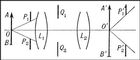 Рис. 1. Q1Q2 — апертурная диафрагма; её изображение в предшествующей части оптич. системы L1 есть входной зрачок P1P2; изображение в последующей части L2 — выходной зрачок Р'1Р'2. Лучи, выходящие из точки О объекта АВ, сильнее всего ограничиваются входным зрачком P1P2, выходящие из точки О' изображения A'B' — выходным зрачком Р'1Р'2.