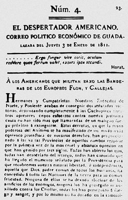 Фотокопия одного из номеров газеты, издававшейся Идальго в Гвадалахаре. Январь 1811.