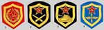 Нарукавные знаки для прапорщиков, сержантов, солдат и курсантов военных училищ. 1. Мотострелковые войска. 2. Артиллерия. 3. Танковые войска. 4. Авиация.