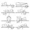 Схемы корчевальных машин: 1 — трактор с канатом для корчевания прямой тягой; 2 — экскаватор со сменным корчевальным оборудованием; 3 — корчеватель-собиратель с передней навеской рабочего органа; 4 — корчеватель с задней навеской рабочего органа; 5 — корчеватель-погрузчик с челюстным захватом; 6 — корчеватель-погрузчик с передней навеской рабочего органа; 7 — навесной рычажной корчеватель; 8 — самоходная машина роторного типа.