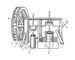 Рис. 1. «Машина» для подъёма и нагнетания воды: 1 — водяное колесо; 2 — насос для подъёма воды; 3 — насос для нагнетания воды; 4 — труба.