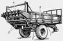 Рис.1. Навозоразбрасыватель: 1 — рама; 2 — ходовая часть; 3 — скребковый транспортёр; 4 — разбрасывающий лопастной рабочий орган; 5 — кузов.