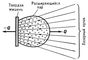 Рис. 1. Движение пара вблизи поверхности металла и передача мишени механического импульса от воздействующего на неё лазерного излучения: Q — вектор количества движения испаренного вещества, — Q — импульс, полученный твёрдой мишенью.