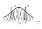Рис. 2. Структура спектральной линии газа в оптическом диапазоне: 1 — линии однородной ширины Г, излучаемые отдельными атомами и смещённые из-за эффекта Доплера; 2 — контур спектральной линии газа; 3 — резонансная кривая резонатора; n0 — собственная частота резонатора; n0 — частота, соответствующая вершине спектральной линии.