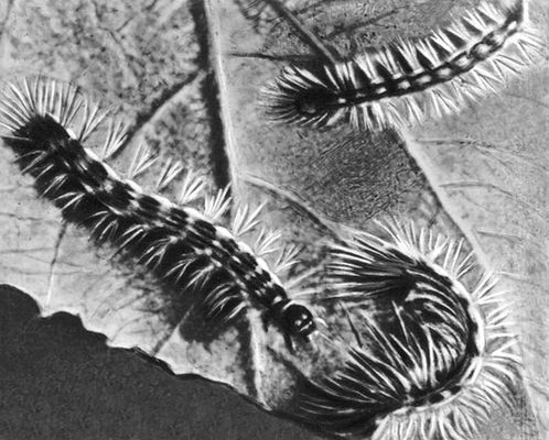 Американская белая бабочка. Гусеницы, повреждающие листья.