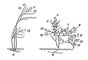 Рис. 3а. Нарастание и длительность жизни скелетных осей у различных жизненных форм: а — кустарник; б — кустарничек. Точками и пунктиром обозначены отмирающие части побегов. Римские цифры — основные структурные оси, арабские — годичные приросты.