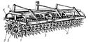 Мотыга вращающаяся: 1 — рама; 2 — задний вал; 3 — передний вал; 4 — игольчатые диски; 5 — площадка для балласта; 6 — секции игольчатых дисков; 7 — секция мотыги.