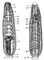 Вскрытая медицинская пиявка. А — строение кишечника; Б — строение остальных внутренних органов при снятом кишечнике: 1 — челюсти; 2 — глотка; 3 — первая пара слепых карманов кишечника; 4 — задняя кишка; 5 — прямая кишка; 6 — задняя присоска; 7 — органы выделения (метанефридии); 8 — кожа; 9 — кольцевые мышцы; 10 — продольные мышцы: 11 — паренхима; 12 — «мозг»; 13 — брюшная нервная цепочка; 14 — первая пара семенников; 15 — последняя их пара; 16 — яичник; 17 — влагалище.