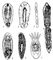 Ресничные черви: 1 — отряд бескишечные (Childia groenlandica); 2 — отряд поликладиды (Stylochus pilidium); 3 — отряд катенулиды (Catenula lemnae), цепочка из двух делящихся особей; 4 — отряд пролецитофоры (Monoophorum calinosum); 5 — отряд сериаты (Dendrocoelum lacteum): 6 — отряд макростомиды (Microstomum lineare), цепочка из нескольких делящихся особей; 7 — отряд темноцефалиды (схема строения). Все изображения увеличены.