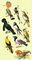 1 — удод; 2 — медосос мохо; 3 — дрозд-рябинник; 4 — зонтичная птица; 5 — деревенская ласточка; 6 — иволга; 7 — розовый скворец; 8 — свиристаль; 9 — шалашник.