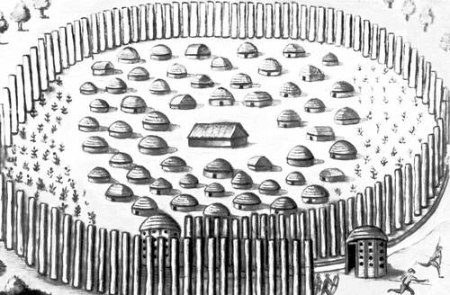 Укрепленное селение индейцев тимуква 16 в. Северная Америка.