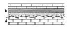 Рис. 3. Структурное несогласие: А — древняя толща, смятая в складки; Б — несогласно залегающая молодая толща; а — а — поверхность несогласия.