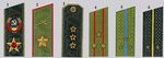 Погоны военнослужащих Советской Армии и Военно-Морского Флота. К повседневному обмундированию: 1. Адмирал флота Советского Союза. 2. Маршал артиллерии. 3. Адмирал (для закрытого кителя). 4. Полковник. 5. Старший лейтенант. 6. Лейтенант.