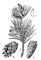 Сосна обыкновенная: а — ветвь с тычиночными колосками; б—в — зрелые шишки; г — семя.