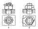 Гаечные замки: а — с запирающим элементом между гайкой и резьбовым стержнем (с корончатой гайкой и шплинтом); б — с запирающей шайбой между гайкой и деталью.