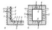 Рис. 4. Поверхностная гидроизоляция, работающая «на отрыв»: а — асфальтовая гидроизоляция; б — металлическая гидроизоляция; 1 — несущая конструкция; 2 — поверхностная гидроизоляция; 3 — защитное ограждение; 4 — стальные анкеры; 5 — напорный фронт воды; 6 — стальная обшивка.