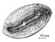 Рис. 1. Общий вид тельца Пачини (стрелкой показано начало немиелинизированной части нервного окончания): 1 — внутренняя колба; 2 — капсула рецептора.
