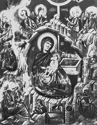 «Рождество». Фреска в церкви св. Николая в Каконстрии. Около 1300.