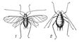 Гороховая тля: 1 — крылатая самка; 2 — бескрылая самка.