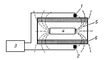 Рис. 2. Феррозондовый коэрцитиметр (блок-схема): 1 и 2 — чувствительные элементы феррозонда, соединённые по разностной схеме; 3 — феррозондовый нулевой прибор; 4 — образец; 5 — силовые линии магнитного поля образца; 6 — намагничивающая катушка.
