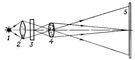 Рис. 2. Оптическая схема проекционного устройства с модулятором света: 1 — источник света; 2 — конденсор; 3 — модулятор; 4 — проекционный объектив; 5 — светорассеивающий экран.