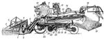 Комбайн (рис. 1) состоит из жатки, молотилки, копнителя, бункера, двигателя, кабины или площадки с органами управления и ходовой части; при раздельной уборке на жатке монтируют подборщик.