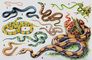 Змеи. 1 — обыкновенная слепозмейка (Typhlops vermicularis); 2 — обыкновенный уж (Natrix natrix); 3 — тигровый уж (Natrix tigrina); 4 — зелёная плетевидка (Dryophis prasinus); 5 — пама (Bungarus fasciatus); 6 — узорчатый полоз (Elaphe dione); 7 — амурский полоз (Elaphe schrencki), молодой; 8 — песчаный удавчик (Eryx miliaris); 9 — обыкновенный удав (Constrictor constrictor).