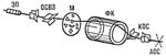 Электроннооптическая система знакопечатающей трубки: ЭП — электронный прожектор; ОСВЗ — отклоняющая система выбора знака; М — матрица знаков (букв, цифр); ФК — фокусирующая катушка; КОС — компенсирующая отклоняющая система; АОС — адресная отклоняющая система.