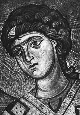 Гелатский монастырь. Голова архангела Гавриила. Фрагмент мозаики в конхе алтаря главного храма. 1125—1130.