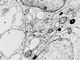 Клетки щитовидной железы крысы с включениями (увеличено в 18000 раз). Условные обозначения: 1 — ядро, 2 — ядерная оболочка, 3 — клеточная оболочка, 4 — эндоплазматическая сеть, 5 — митохондрии, 6 — комплекс Гольджи, 7 — плотные тела, 8 — рибосомы.