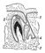 Рис. 1. Схема развития зуба у млекопитающего: 1 — зубная пластинка; 2 — эмалевый орган; 3 — мякоть зуба; 4 — зачаток постоянного зуба.