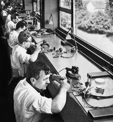 Швейцария. Часовое производство. В цехе специальных ручных операций.