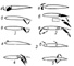 Механизация крыла: 1 — увеличением кривизны профиля (а — отклоняемый носок крыла, б — щиток, в — простой закрылок); 2 — увеличением площади крыла и кривизны профиля (а — предкрылок, б — двухщелевой закрылок, в — предкрылок Крюгера с трёхщелевым закрылком); 3 — путём управления пограничным слоем (а — турбулизатор, б — отсасывание пограничного слоя); 4 — реактивным устройством (реактивный закрылок); 5 — интерцептором.