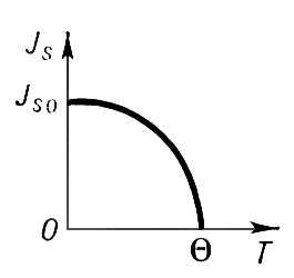 Рис. 4. Схематическое изображение температурной зависимости намагниченности насыщения Js ферромагнетика, Q — точка Кюри.