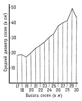 Приближённая линия регрессии для зависимости среднего диаметра северной сосны от высоты.