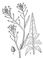Свербига восточная, верхняя часть растения; а — плод; б — лист.