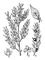 Иглица понтийская, цветущее растение; а — тычиночный цветок; б — пестичный цветок; в — ветка с плодами: г — филлокладии с цветком.