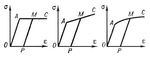 Ðèñ. 2. Èäåàëèçèðîâàííûå ñõåìû çàâèñèìîñòè (s — e): à — èäåàëüíî-ïëàñòè÷åñêèé ìàòåðèàë; á — ìàòåðèàë ñ ëèíåéíûì óïðî÷íåíèåì; â — ìàòåðèàë ñ íåëèíåéíûì óïðî÷íåíèåì.