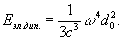 Электрическое дипольное И. Простейшей системой, которая может быть источником И., являются два связанных друг с другом колеблющихся, равных по величине, разноимённых заряда. Они образуют диполь с переменным моментом. Если, например, заряды диполя совершают гармонические колебания навстречу друг другу, то дипольный электрический момент изменяется по закону d = d0 sin wt (w — частота колебаний, d0 — амплитуда момента d). Усреднённая по времени t интенсивность И. такого диполя