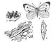 Капустная белянка: 1 — яйца; 2 — гусеница на поврежденном капустном листе; 3 — куколка; 4 — бабочка.