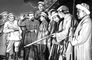 Сцена из спектакля Казахского театра драмы им. М. О. Ауэзова. «Амангельды» Г. Мусрепова. 1952.