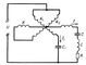 Рис. 2. Схема электродинамического частотомера: K — неподвижная катушка логометра из двух одинаковых частей для создания равномерного магнитного поля; К1 и К2 — подвижные катушки, жёстко скреплённые под углом 90° и взаимодействующие с катушкой K; C, L, R — электрические ёмкость, индуктивность и сопротивление колебательного контура; С1 — конденсатор, обеспечивающий сдвиг фаз (90°) между U и I1; U — напряжение, частота которого измеряется; I и I1 — токи в ветвях логометра.