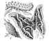 Айлантовый шелкопряд: 1 — гусеница; 2 — кокон; 3 — бабочка.