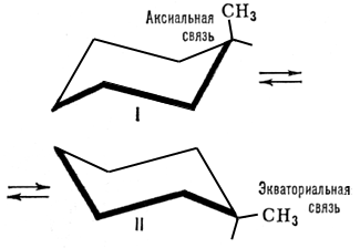 Инверсия в химии, 1) изменение конформации циклической молекулы, в результате чего меняется ориентация заместителя относительно кольца. Например, метилциклогексан существует в виде равновесной смеси двух конформаций с преобладанием формы II: