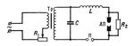Рис. 3. Схема генератора конденсированной искры с управляющим промежутком: АП — регулируемый аналитический промежуток, образованный ванадиевыми электродами; R1 — реостат; Тр — питающий трансформатор; С — конденсатор; L — катушка индуктивности; П — управляющий промежуток; R2 — блокирующее сопротивление.