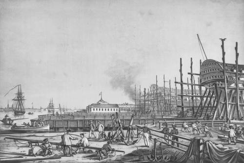 Ленинград. Адмиралтейская верфь. Литография К. Беггрова. 1823.