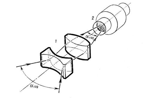 Анаморфотная насадка, анаморфотная приставка (от греч. anamorphóō — преобразовываю), оптическое приспособление, устанавливаемое перед объективом обычного киноаппарата для сжатия или растяжения изображения в горизонтальной плоскости изменением угла наклона падающих на объектив световых лучей относительно его оптической оси. А. н. позволяет использовать обычную киноаппаратуру и стандартную киноплёнку для съёмки и проекции широкоэкранных фильмов. Простейшая А. н. состоит из положительной и отрицательной цилиндрических линз, образующие которых параллельны вертикальной оси кадра (рис.). С такой А. н. при съёмке на обычном кинокадре получается изображение, сжатое по ширине, а при проекции на экран оно растягивается, восстанавливая действительное соотношение размеров снимаемых сцен. См. также Анаморфирование.