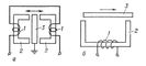 Индуктивный датчик, измерительный преобразователь угла поворота или перемещения в изменение индуктивности. И. д. представляет собой катушку индуктивности с магнитопроводом, подвижный элемент которого (якорь) перемещается под воздействием измеряемой величины. Вследствие изменения воздушного зазора в магнитопроводе меняется его магнитное сопротивление и, следовательно, индуктивность катушки. Для измерений катушку И. д. включают в дифференциальную или мостовую измерительную схему переменного тока, у которой указывающий элемент проградуирован в единицах измеряемой величины. Наиболее часто применяют И. д. с переменным зазором (а) и переменной площадью зазора (б). Первые используются для измерений малых перемещений (от долей мкм до 3—5 мм); вторые — для перемещений от 0,5 до 15 мм. Для измерения перемещений в маломощных устройствах, например в стрелочных измерит приборах, применяют И. д., катушки которых питаются от источника тока высокой частоты (5—50 Мгц) либо служат обмотками высокочастотных колебательных контуров.